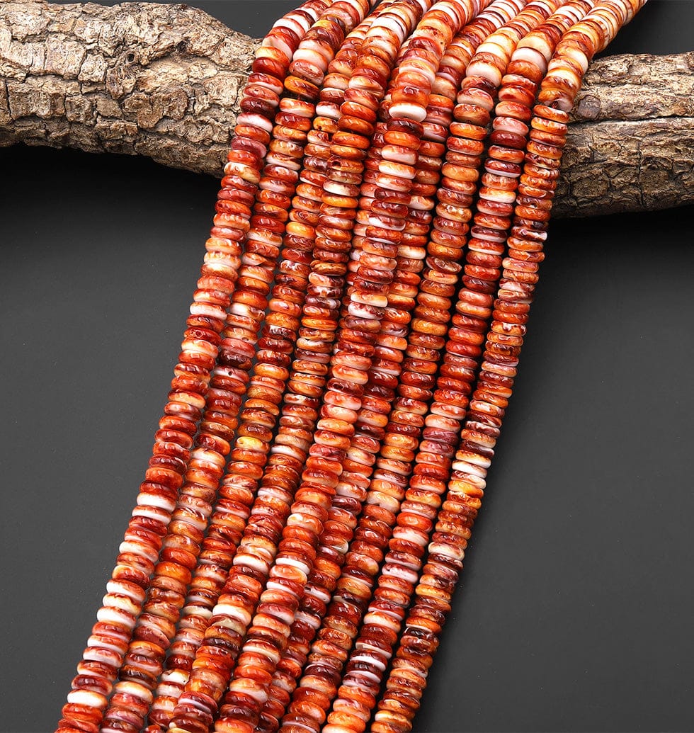 AAA Natural Orange Red Spiny Oyster Thin Rondelle Heishi Beads 6mm 8mm Gemstone 15.5" Strand