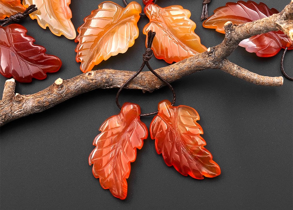 Hand Carved Natural Fiery Orange Red Carnelian Leaf Earring Pair Drilled Gemstone Matched Beads