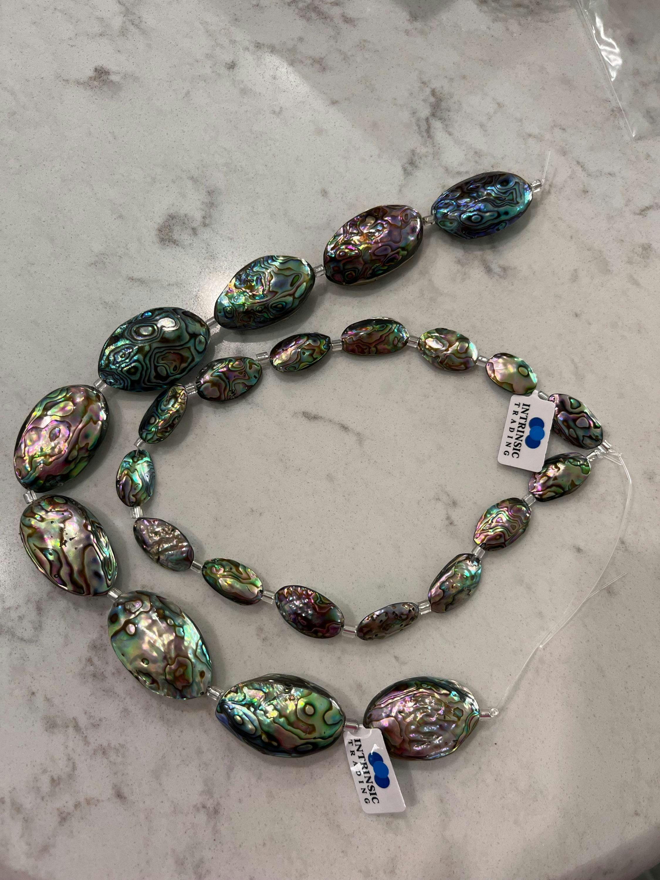 • AAA Large Natural Abalone Beads Puffy Oval Nugget Nuggets 15.5" Strand