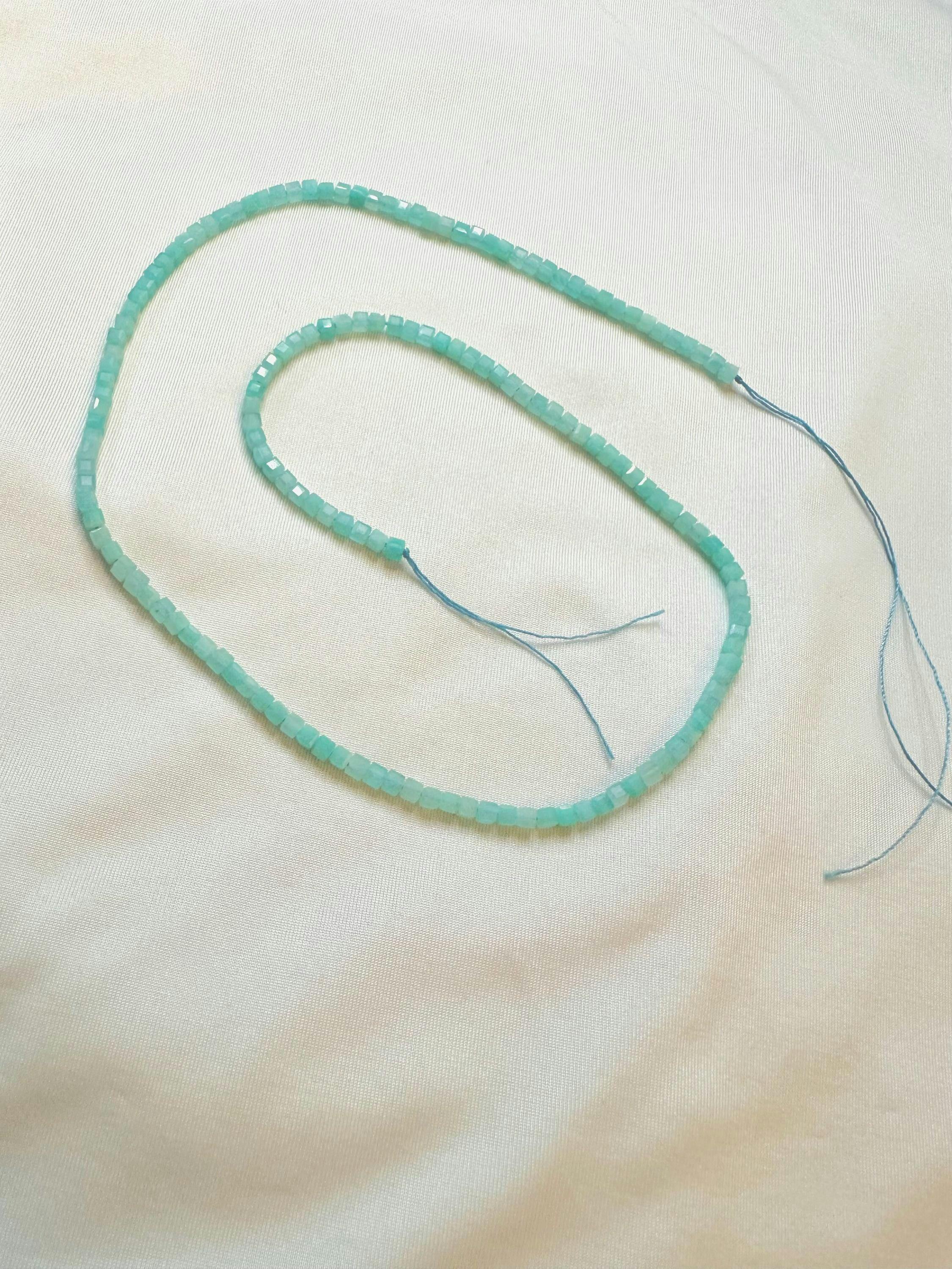 • AA Natural Peruvian Blue Amazonite Faceted 3mm 4mm Cube Square Beads Translucent Gemstone 15.5" Strand
