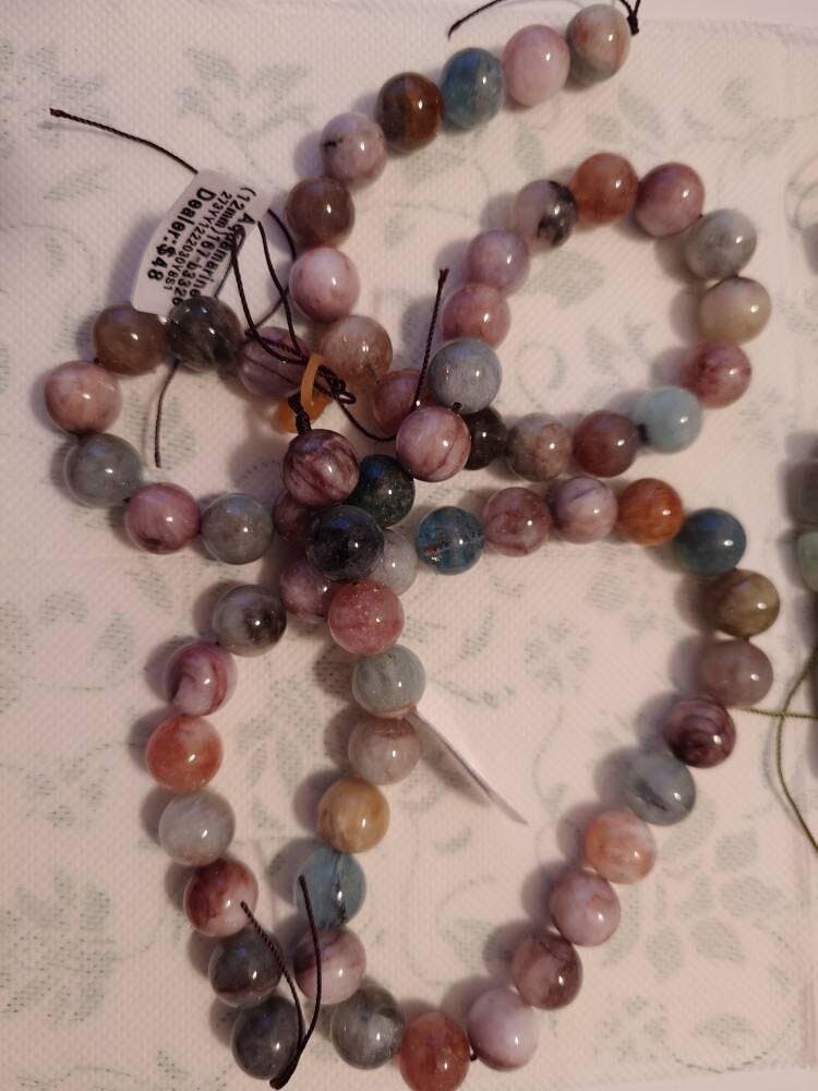 • Natural Blue Green Aquamarine Pink Peach Morganite Round Beads 12mm 15.5" Strand