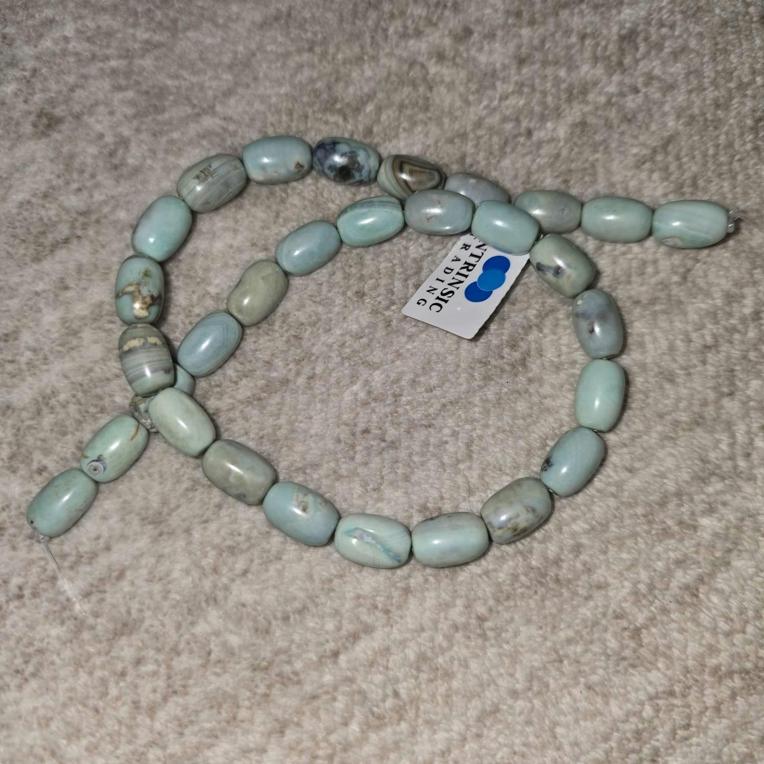 • Seafoam Green Blue Aqua Terra Agate Drum Barrel Beads Aka Dragon Eye Agate 14" Strand