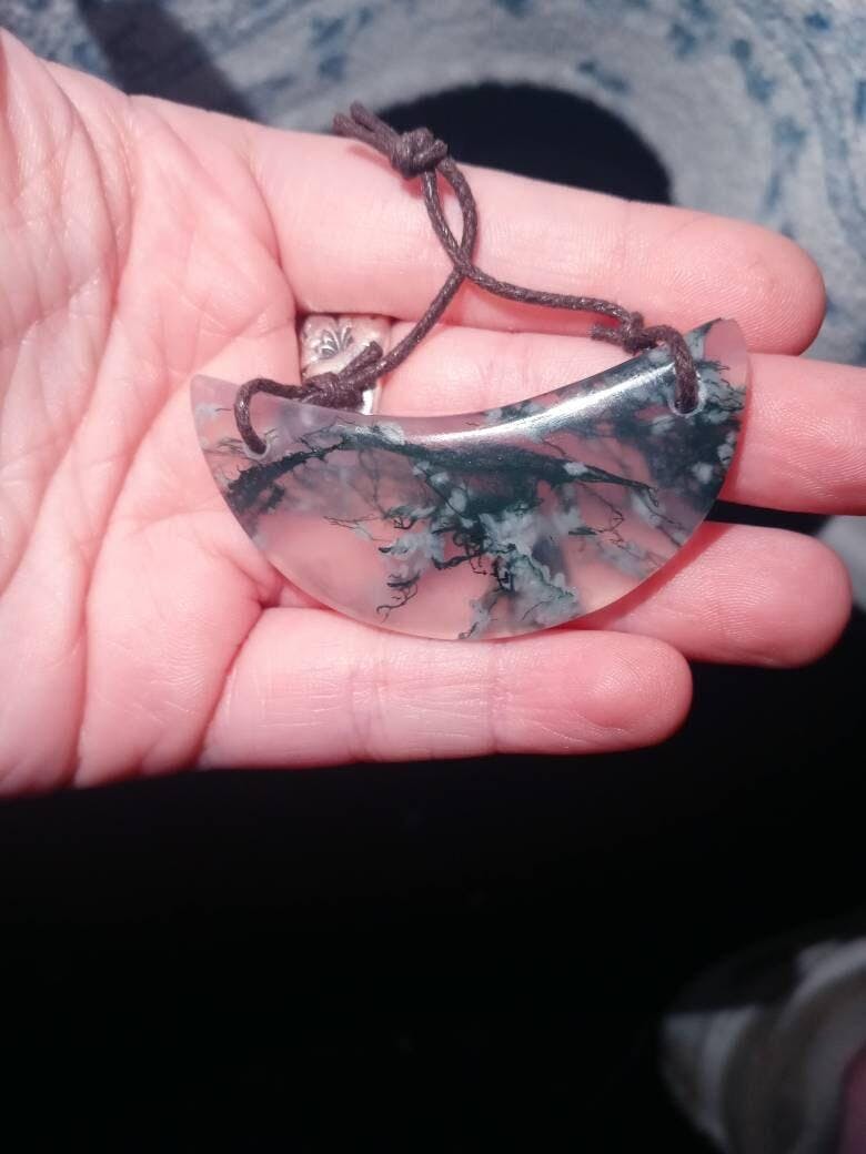 Guaranteed genuine 100% natural green moss agate not treated in any way... Exclusively hand cut for us... Not seen anywhere else! These AAA grade pendants are full of intricate moss patterns!