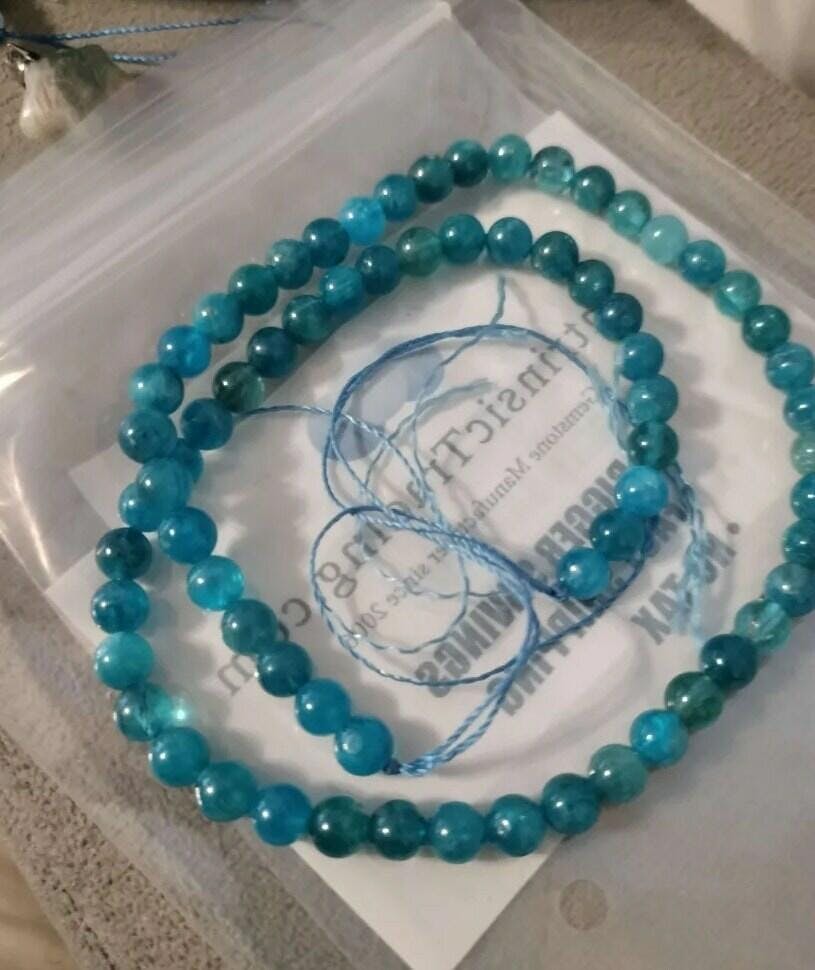 Guaranteed 100% natural Apatite not treated in any way... These beads are expertly polished and drilled with extra translucent teal blue colors that really stand out! Apatite is known for bringing out the creative and learning soul. This inspirational stone is often considered a fire stone that encourages new adventures and overcoming fears of the unknown.