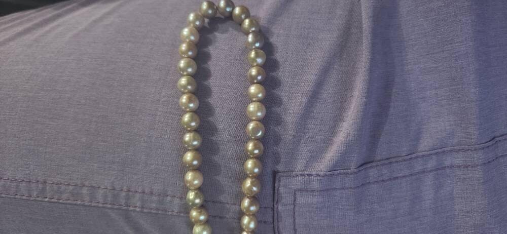 Guaranteed genuine freshwater pearls in their 100% natural soft golden pink, peach, and mauve colors... These beautiful pearls have excellent luster and iridescence for all those classic pearl lovers!