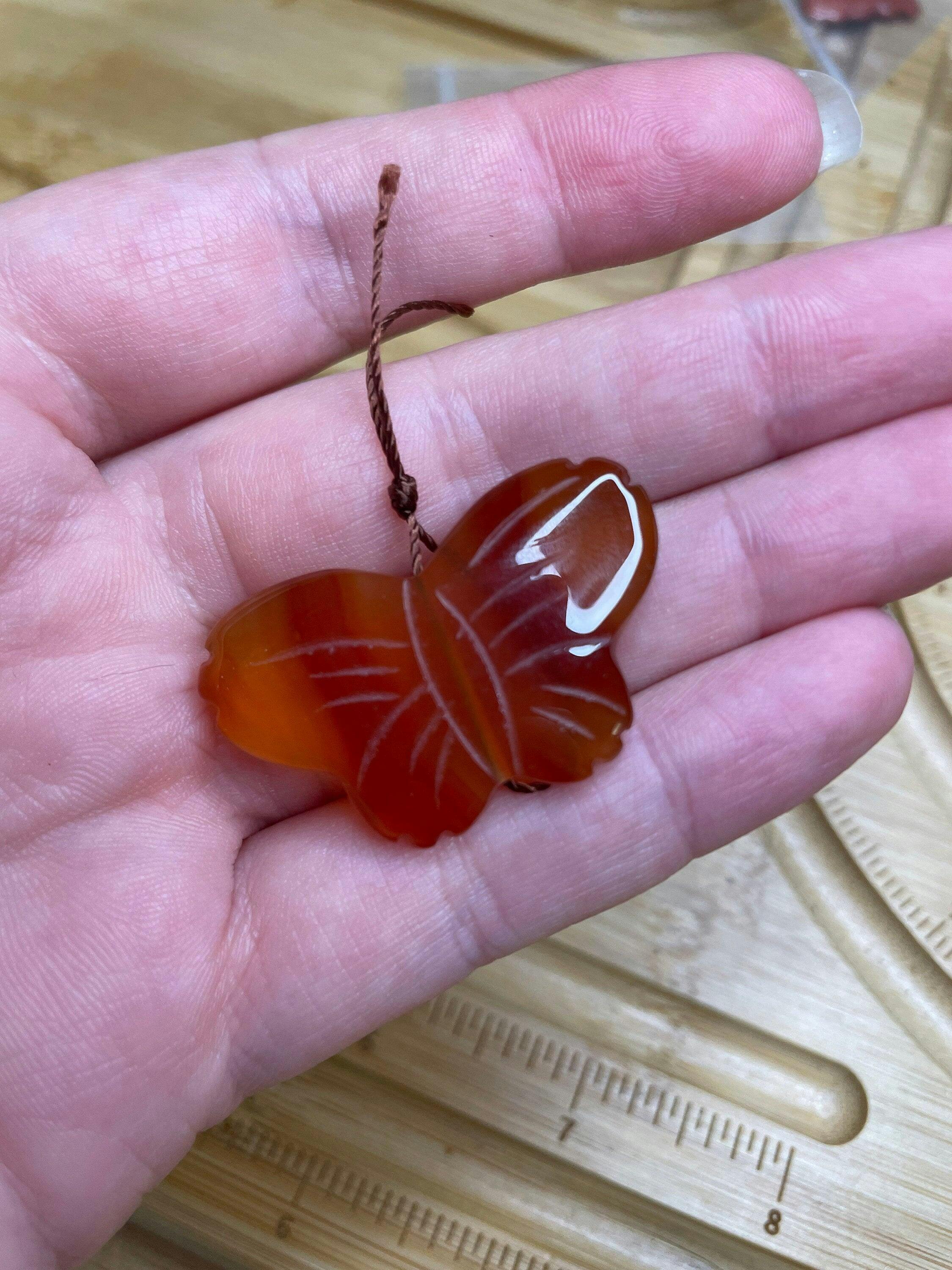 Hand Carved Natural Carnelian Butterfly Pendant Vertically Drilled Gemstone Bead