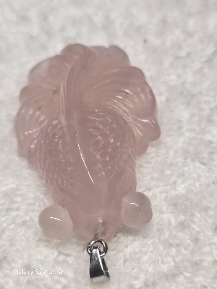 Hand Carved Natural Pink Rose Quartz Goldfish Gemstone Pendant