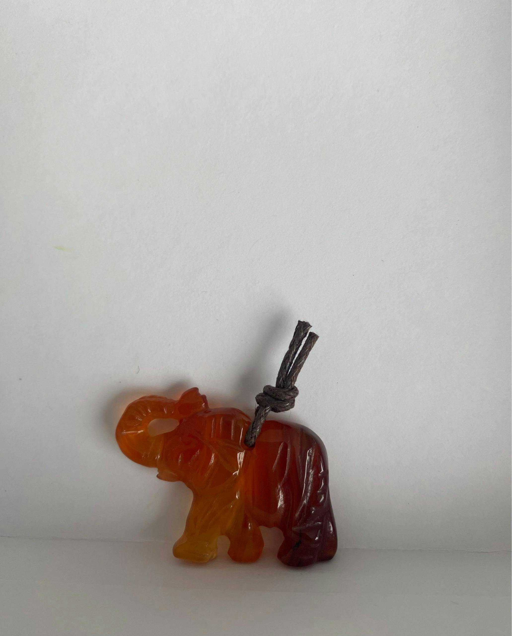 Hand-Carved Natural Red Golden Brown Carnelian Agate Elephant Pendant