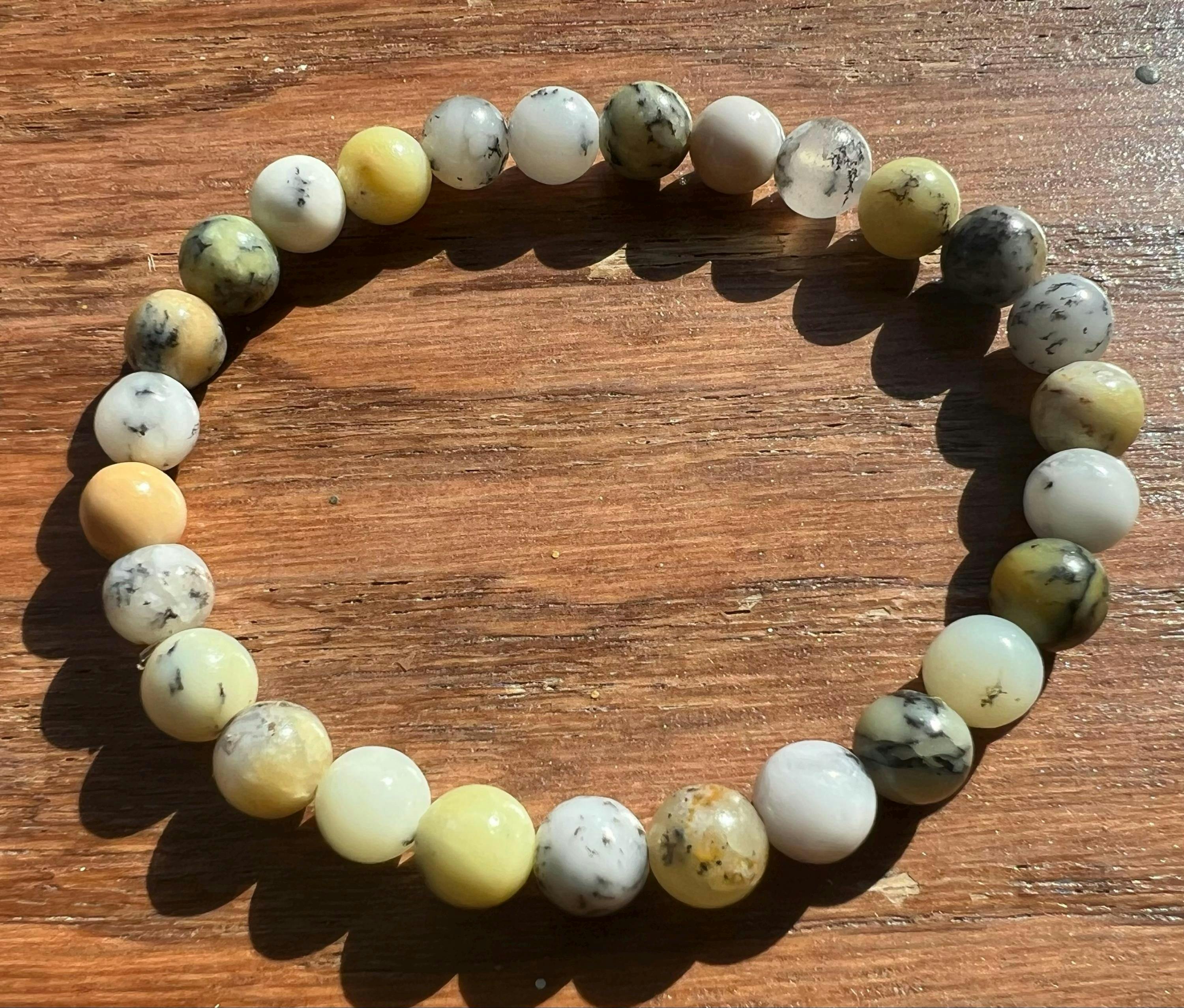 • Natural African Moss Dendritic Opal 6mm 8mm Round Beads Light Yellow Gemstone 15.5" Strand