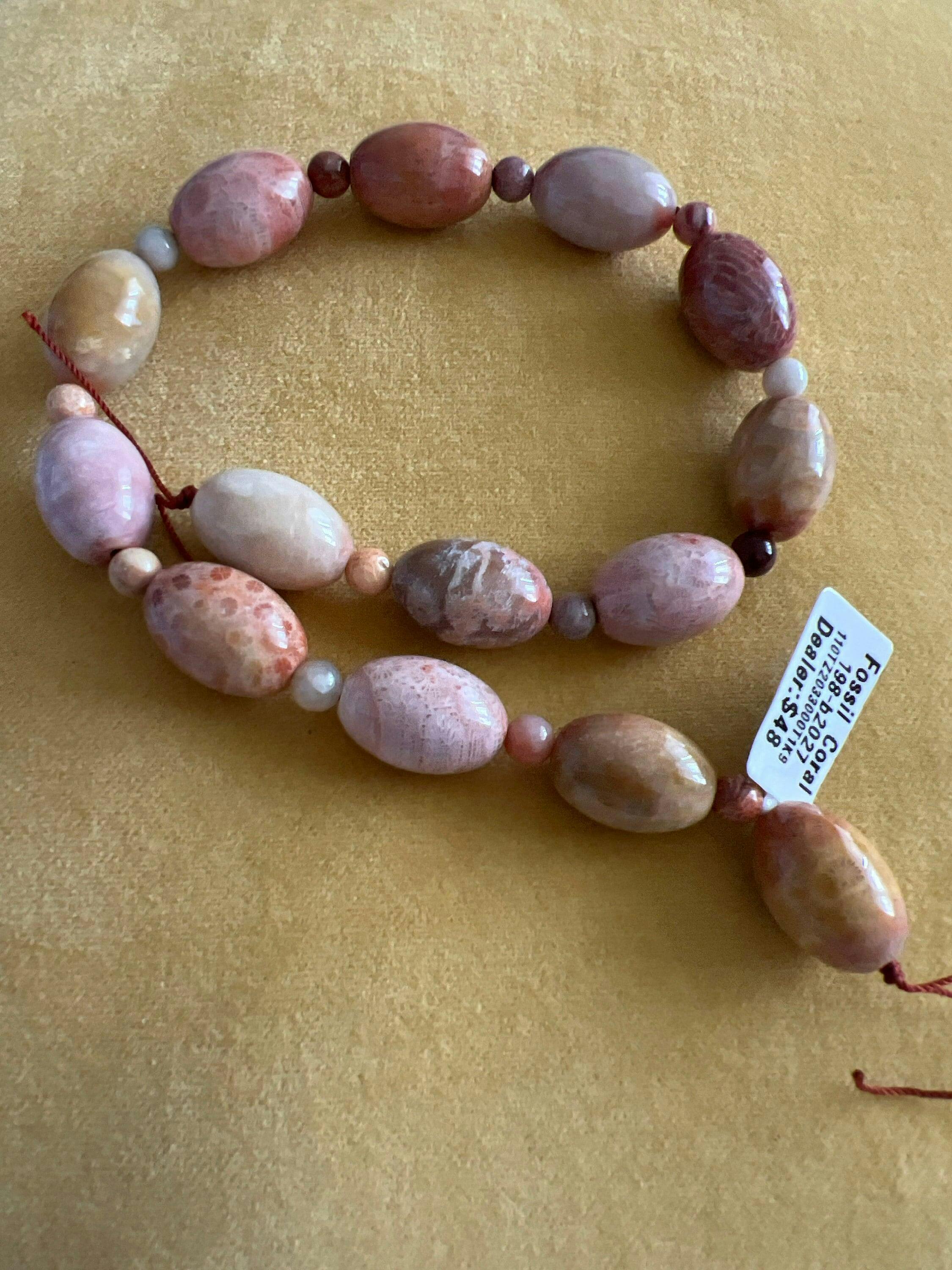 Bead size: about 20x14mm separated with small 6mm fossil coral round beads Strand length: approximately 15.5" Price is per strand.