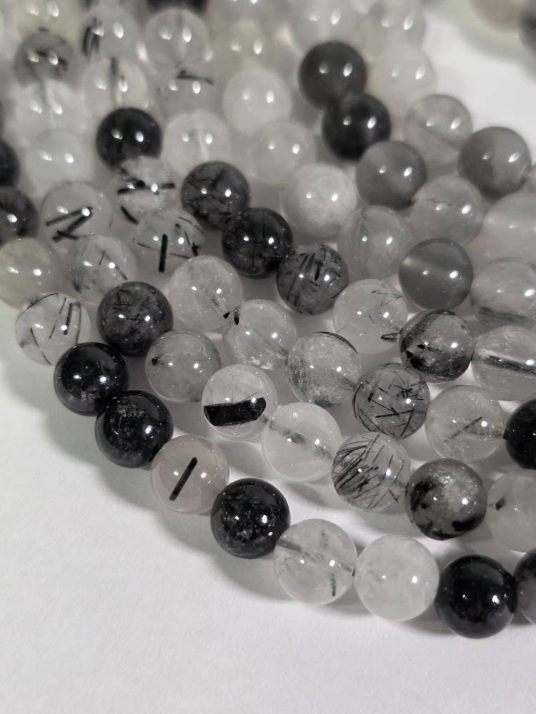 Natural Black Tourmaline Rutilated Quartz Round Beads 5mm 6mm 8mm 10mm 12mm 15.5" Strand