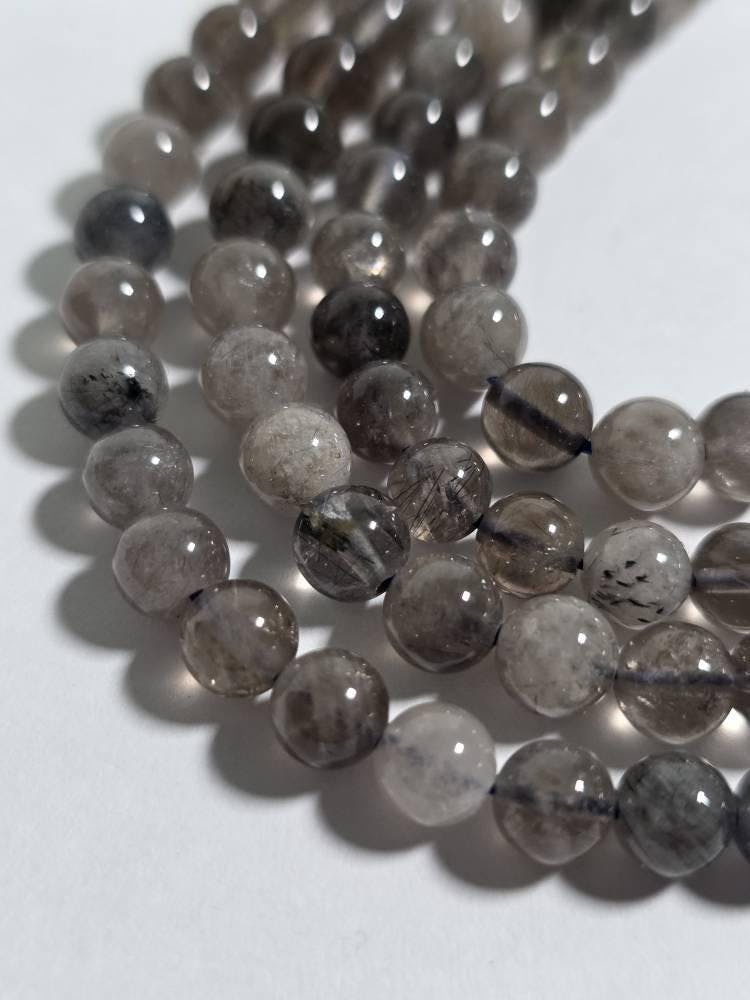 Rare Natural Blue Gray Rutilated Quartz 6mm 8mm 10mm 12mm 14mm Round Beads From Madagascar 15.5" Strand