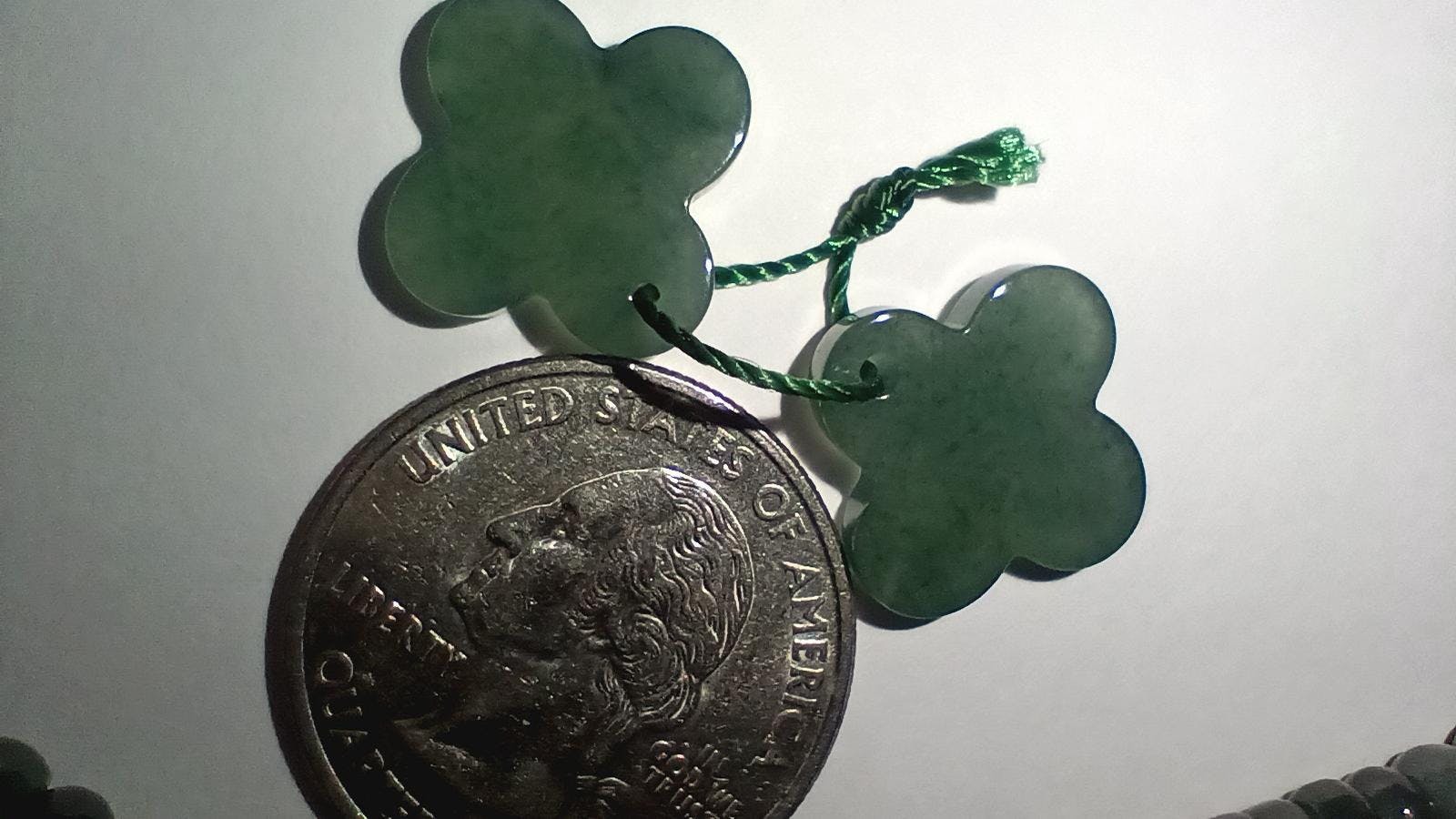 Hand Carved Natural Blue Green Guatemalan Jade 4 Four Leaf Clover Earrings 16mm Flower Matched Gemstone Bead Pair