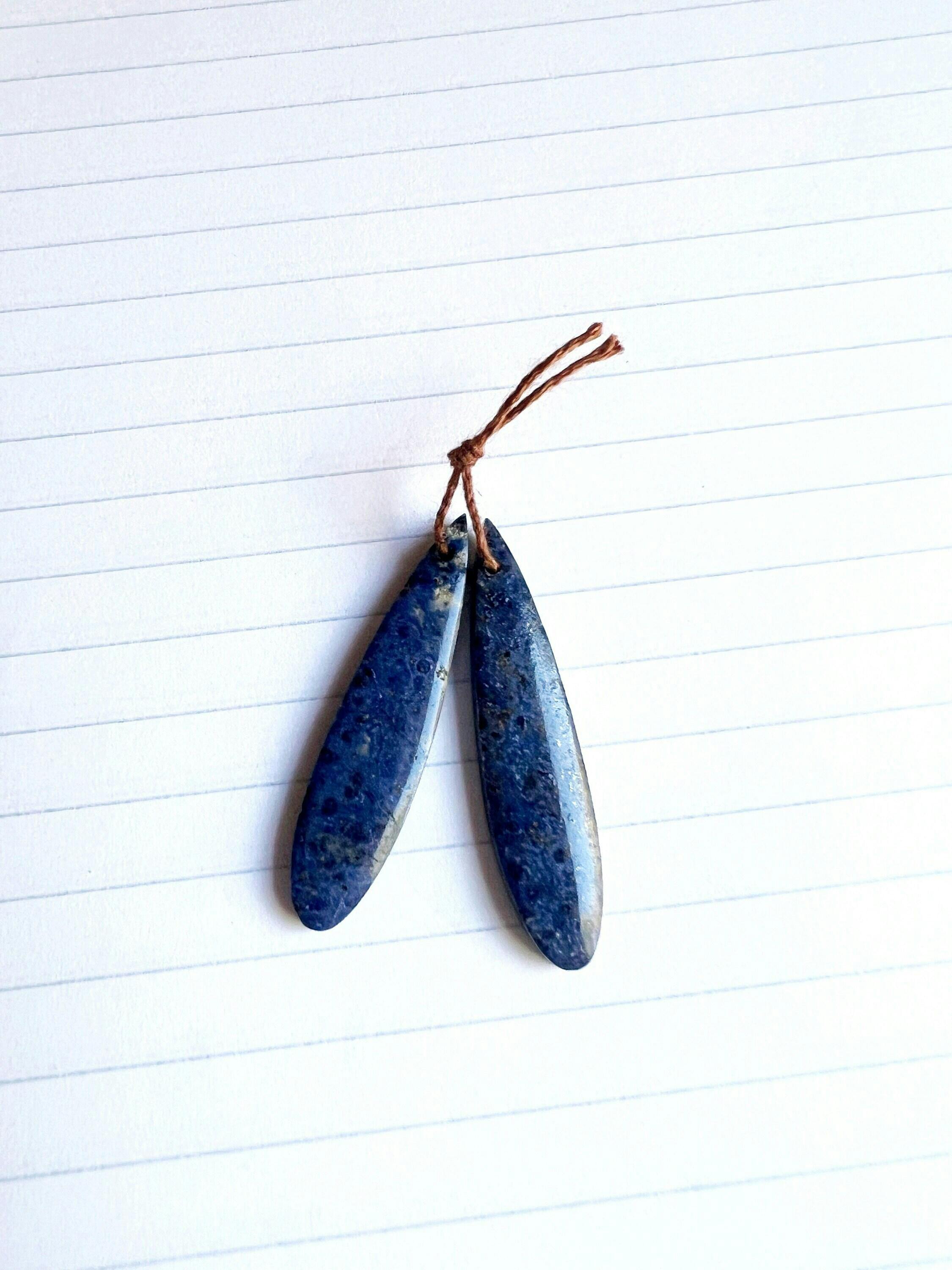 Natural Denim Blue Dumortierite Teardrop Earring Pair Matched Gemstone Beads