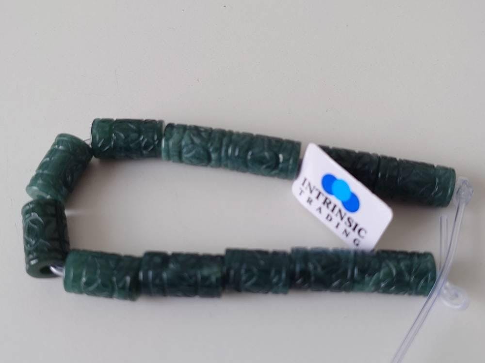 • AAA Large 3mm Hole Beads Hand Carved Natural Guatemalan Blue Green Jade Decorative Tube Good for Leather Cord 8" Strand