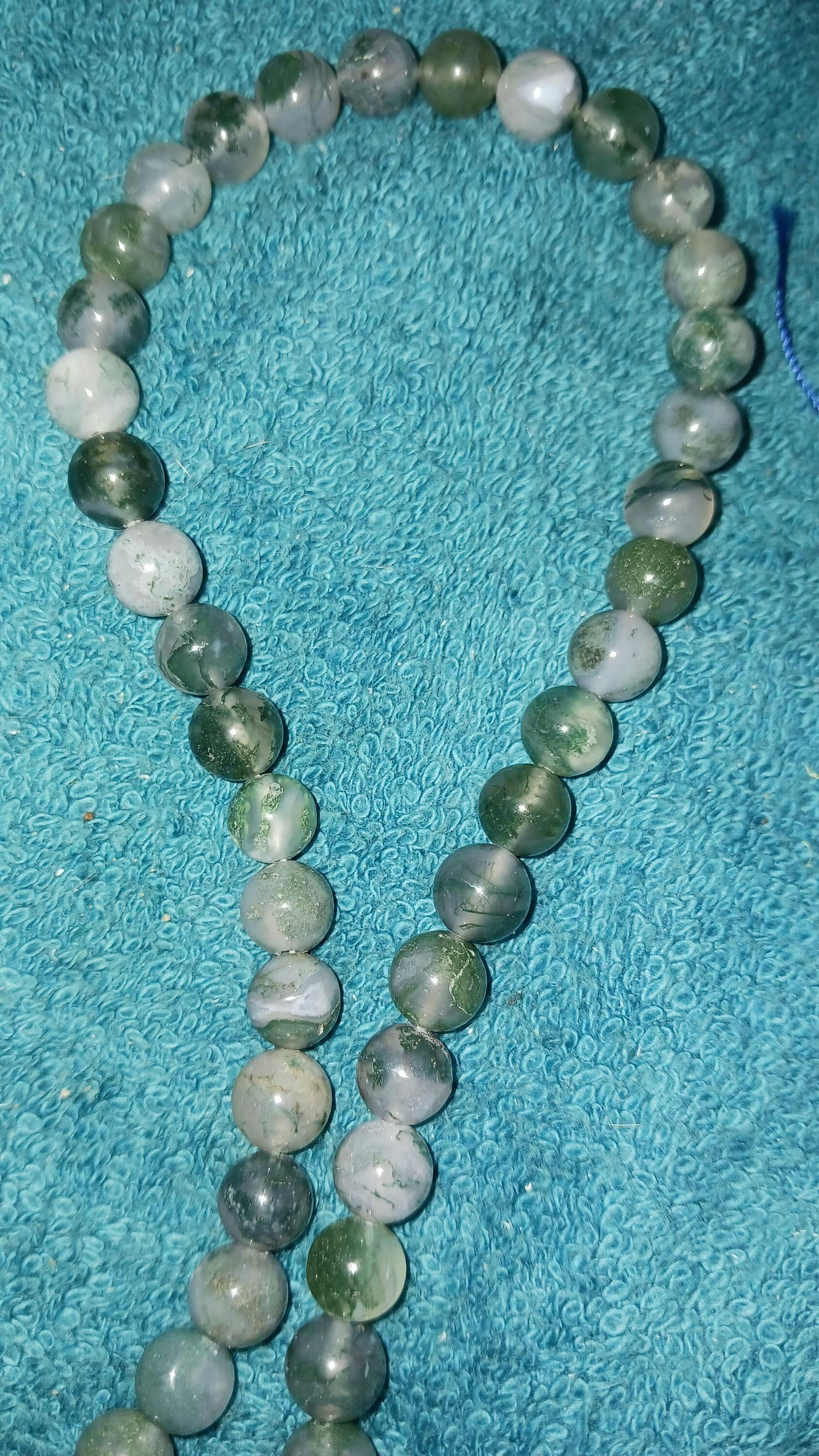 Guaranteed genuine 100% natural green moss agate not treated in any way... There beads are fully of intricate moss patterns!