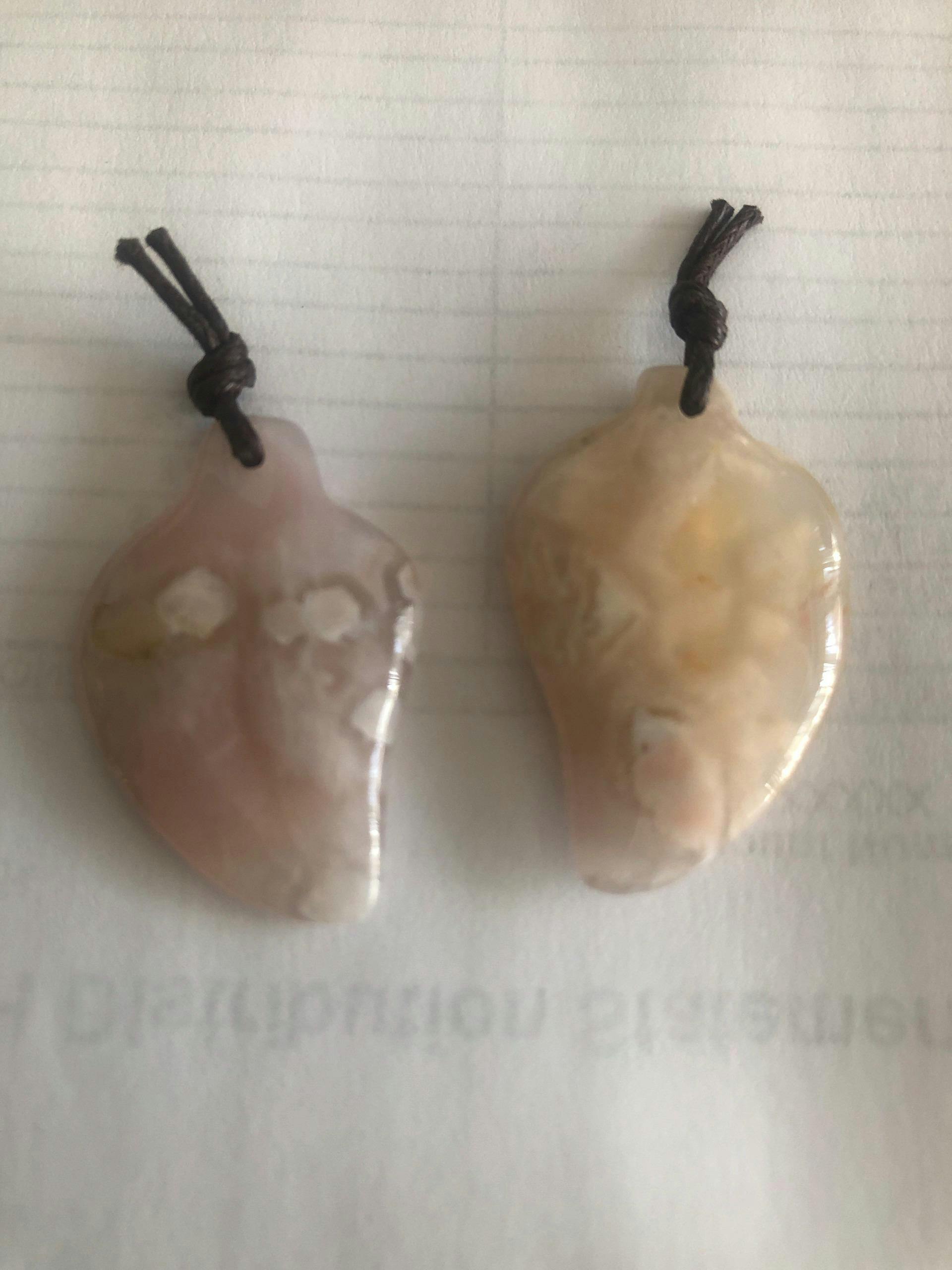 Hand Carved Natural Cherry Blossom Agate Leaf Pendant Bead Drilled Gemstone Aka Flower Agate