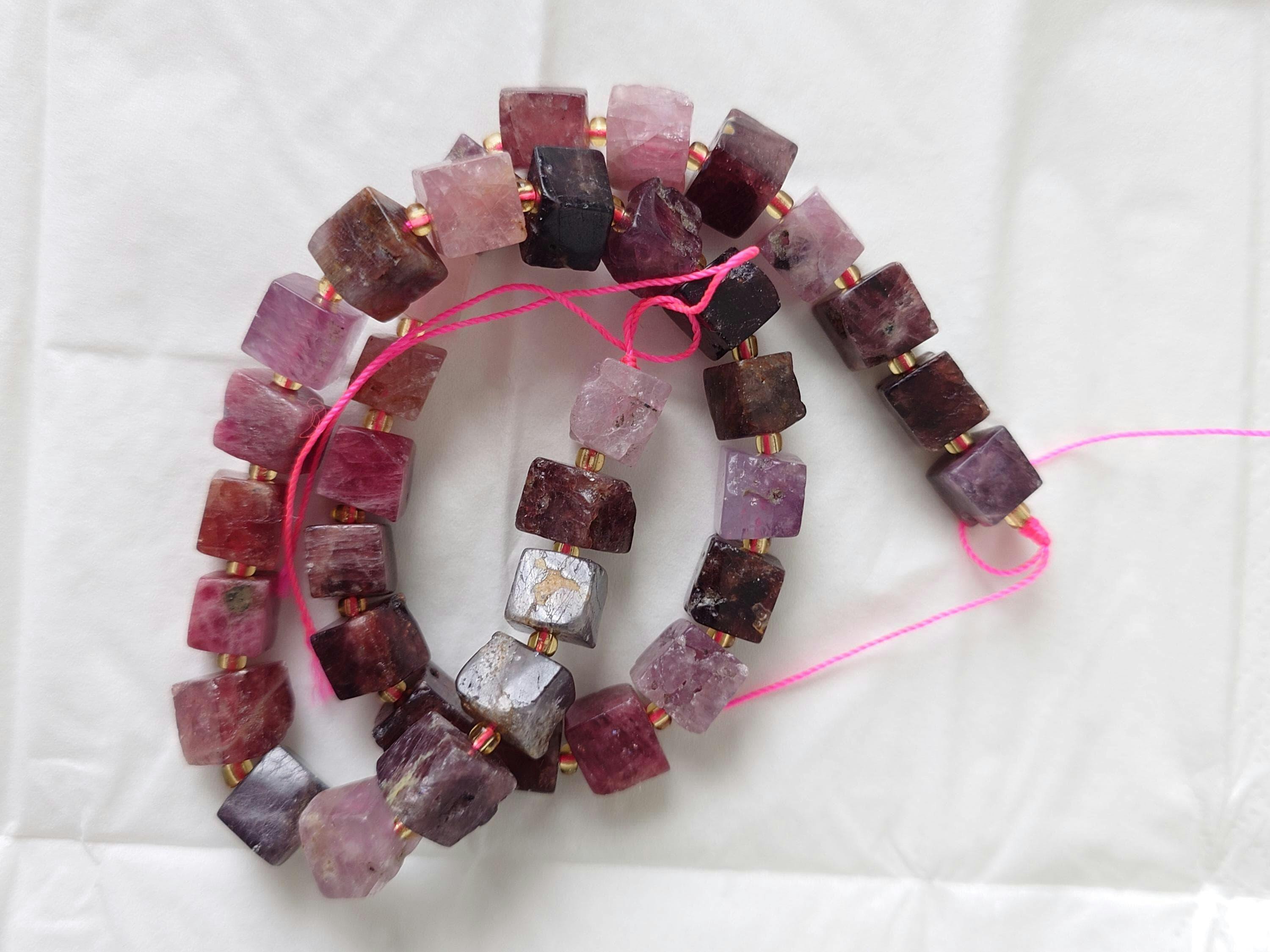 Large Real Genuine Natural Spinel Cube Beads 8mm 10mm Multicolor Red Pink Blue Purple Gemstone 15.5" Strand