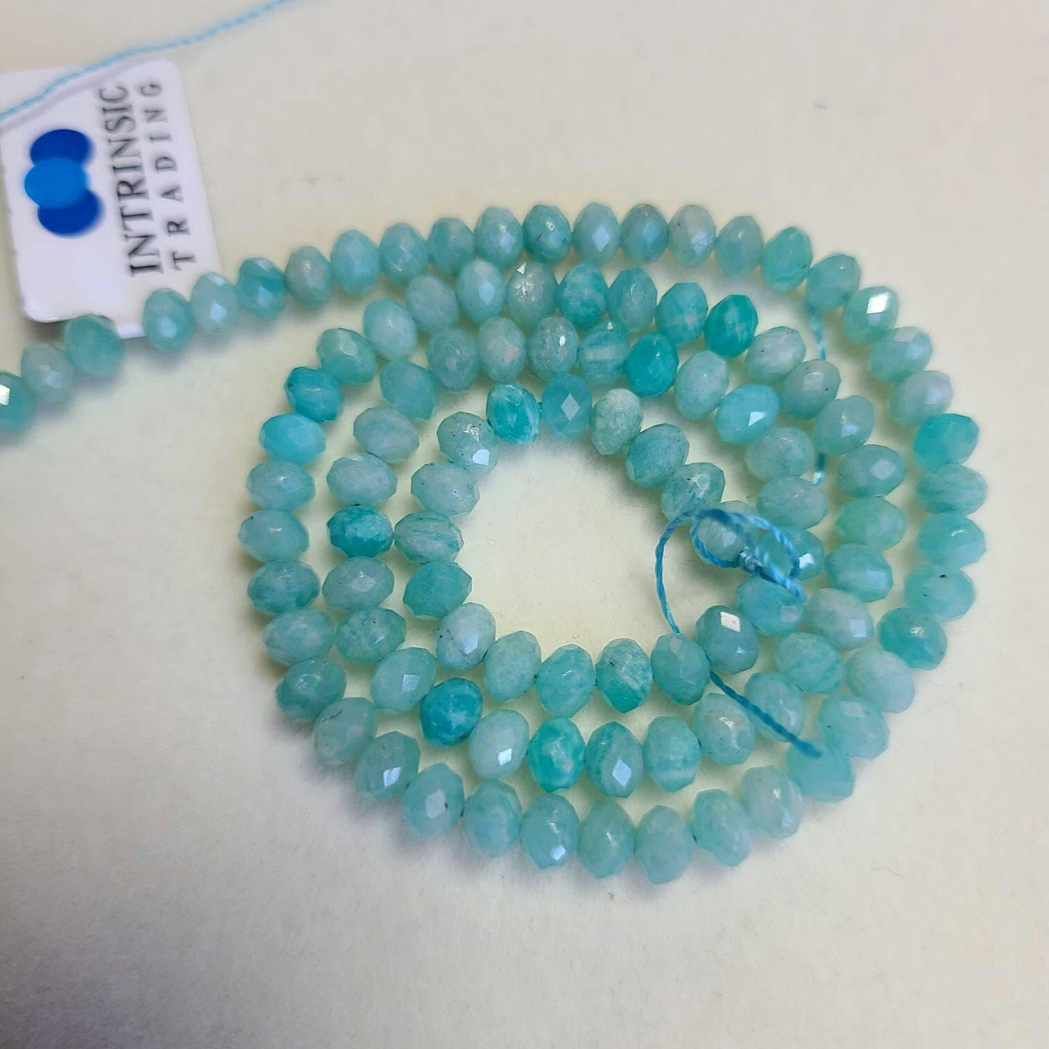 Faceted Natural Peruvian Amazonite 5mm Rondelle Beads Micro Diamond Cut Sea Blue Green Gemstone 15.5" Strand
