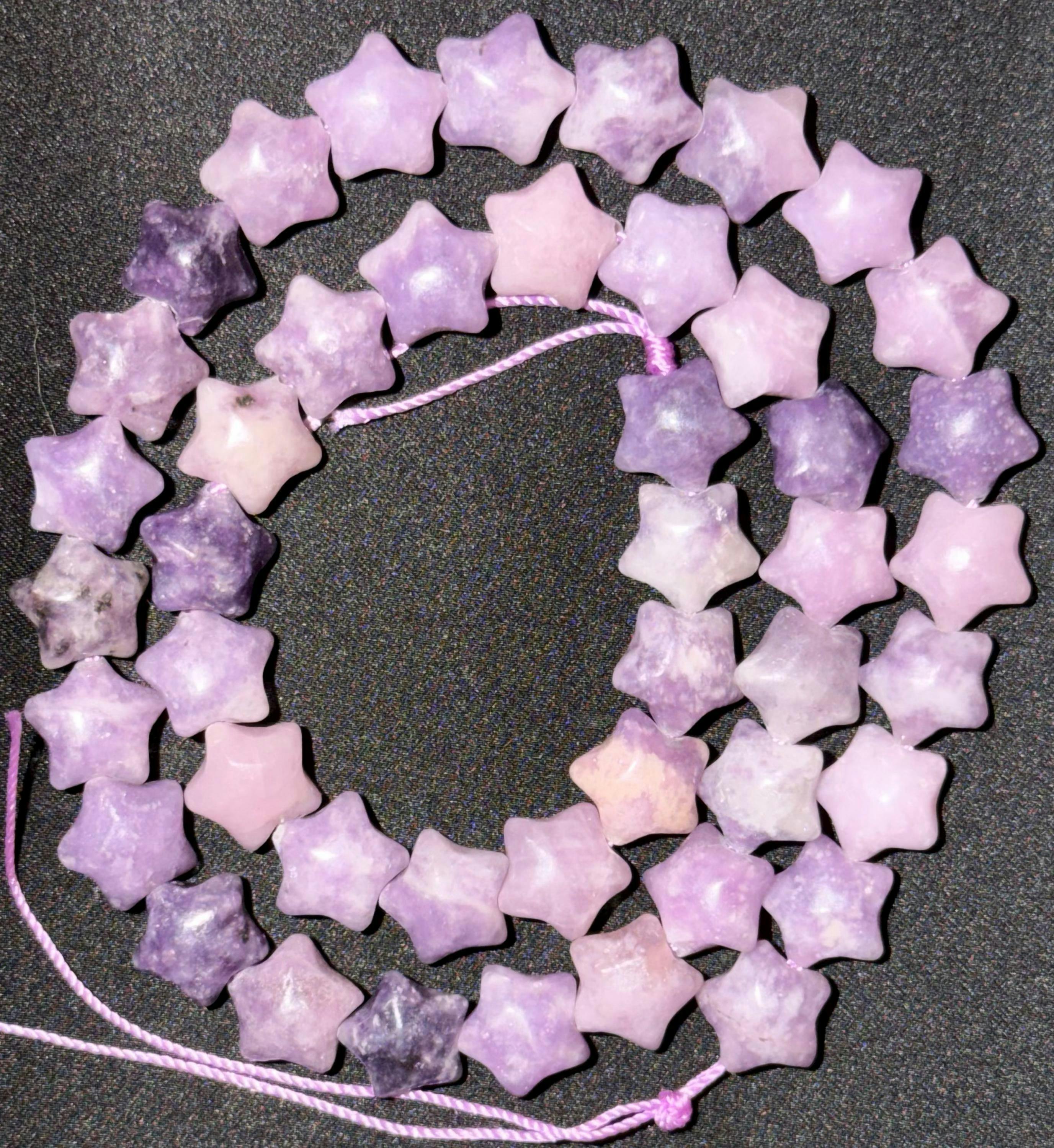 • Natural Purple Lepidolite Beads 10mm Puffy Star Gemstone 15.5" Strand