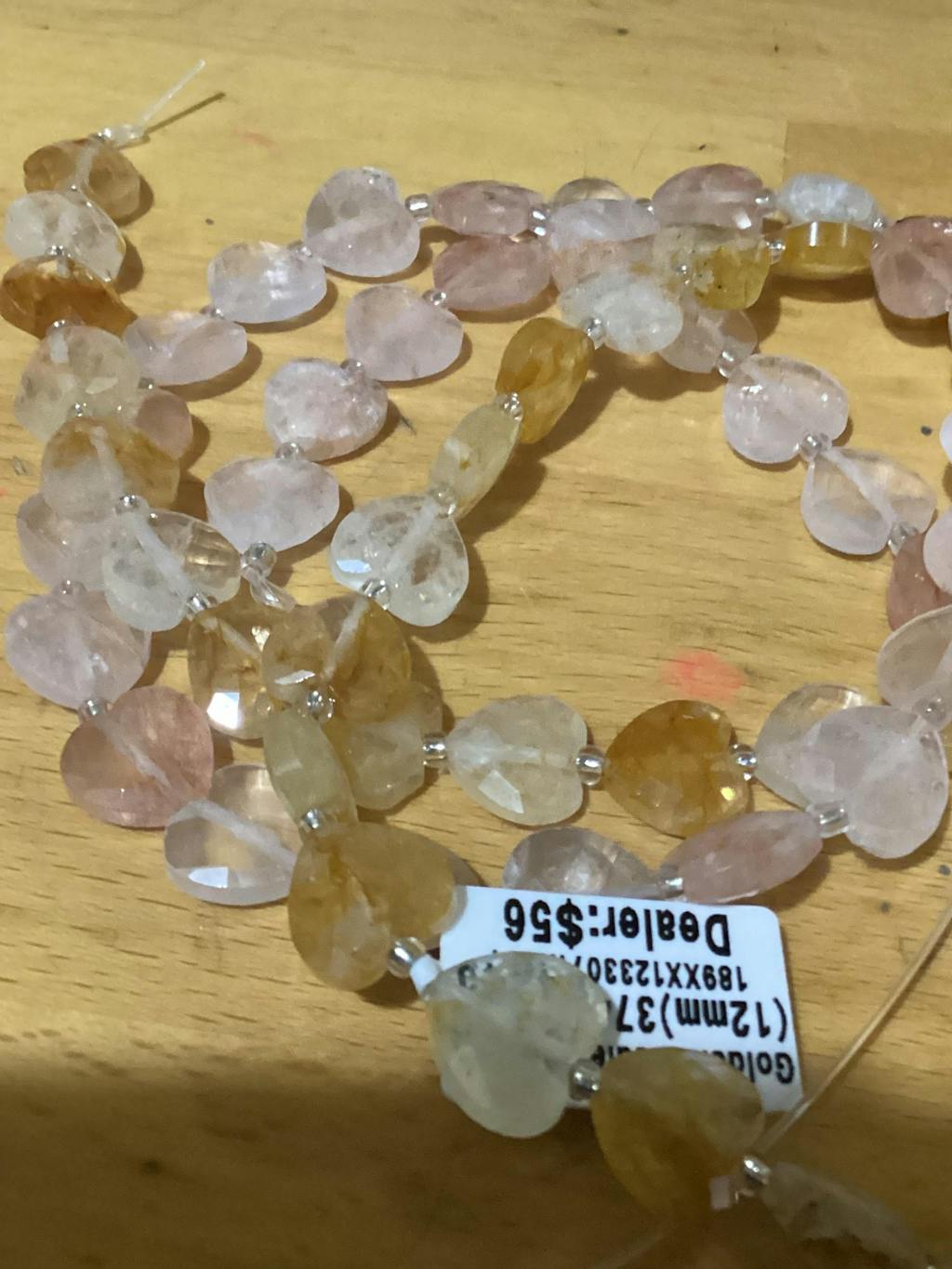 • AAA Natural Golden Healer Quartz Faceted Heart Beads 12mm Gemstone 15.5" Strand