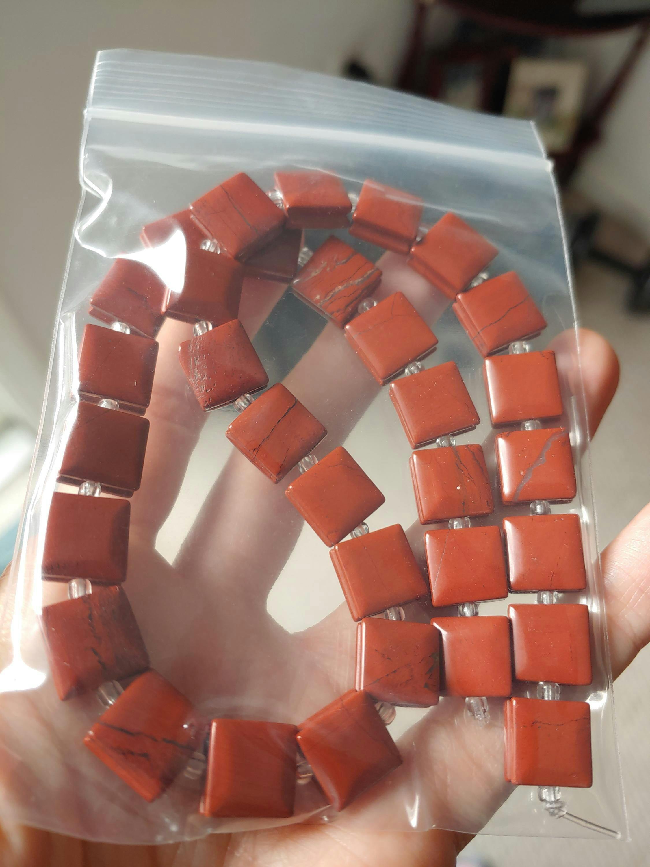 AAA Natural Red Jasper Smooth Square Beads w/ Grooved Line Around 16" Strand