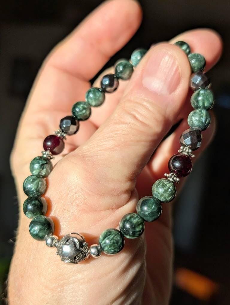 • AAA Russian Seraphinite Smooth Round Beads 6mm 8mm 10mm Real Genuine Green Gemstone 15.5" Strand