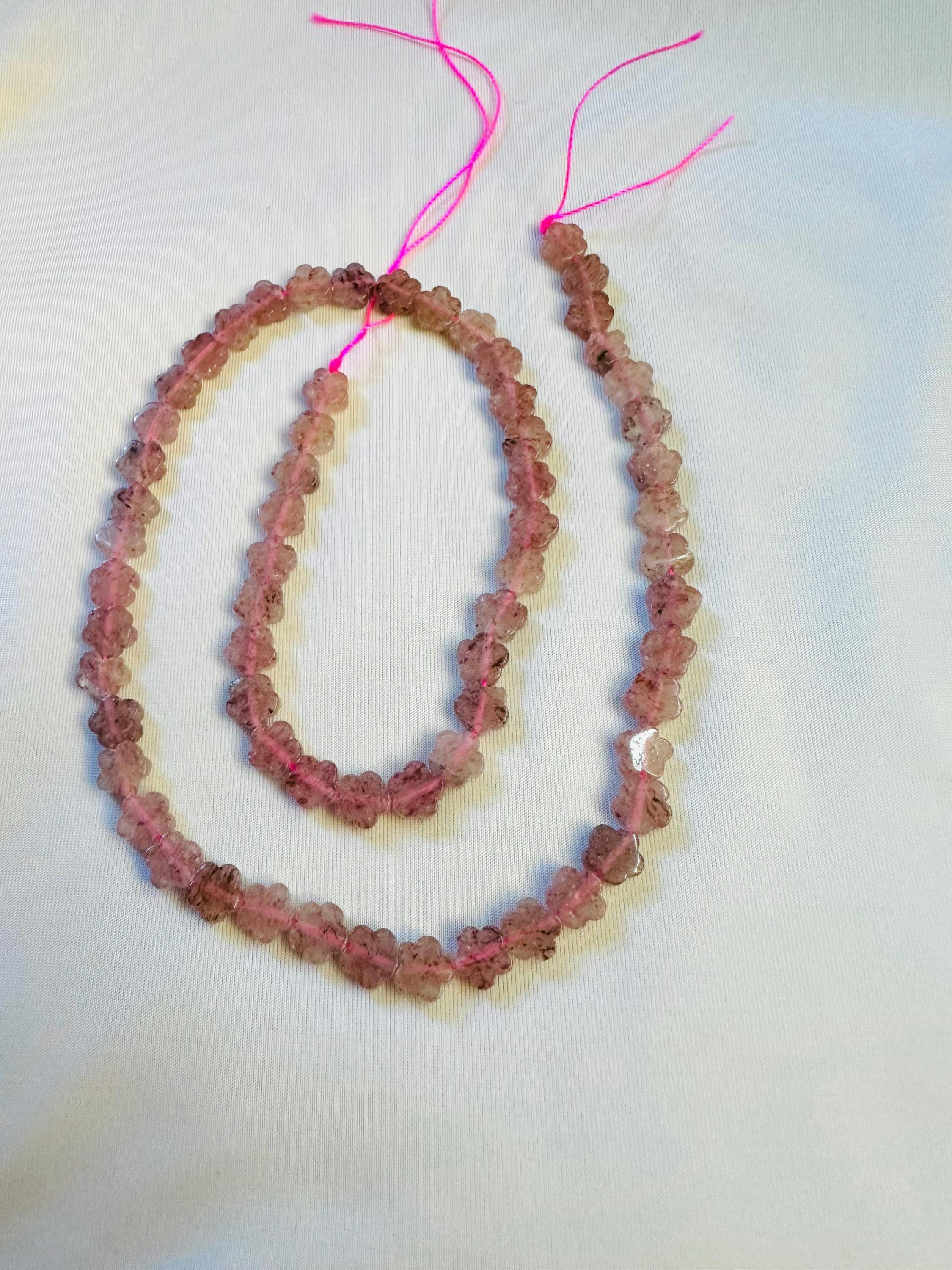 • Natural Strawberry Quartz Cherry Blossom Flower Beads 6mm Carved Gemstone 15.5" Strand