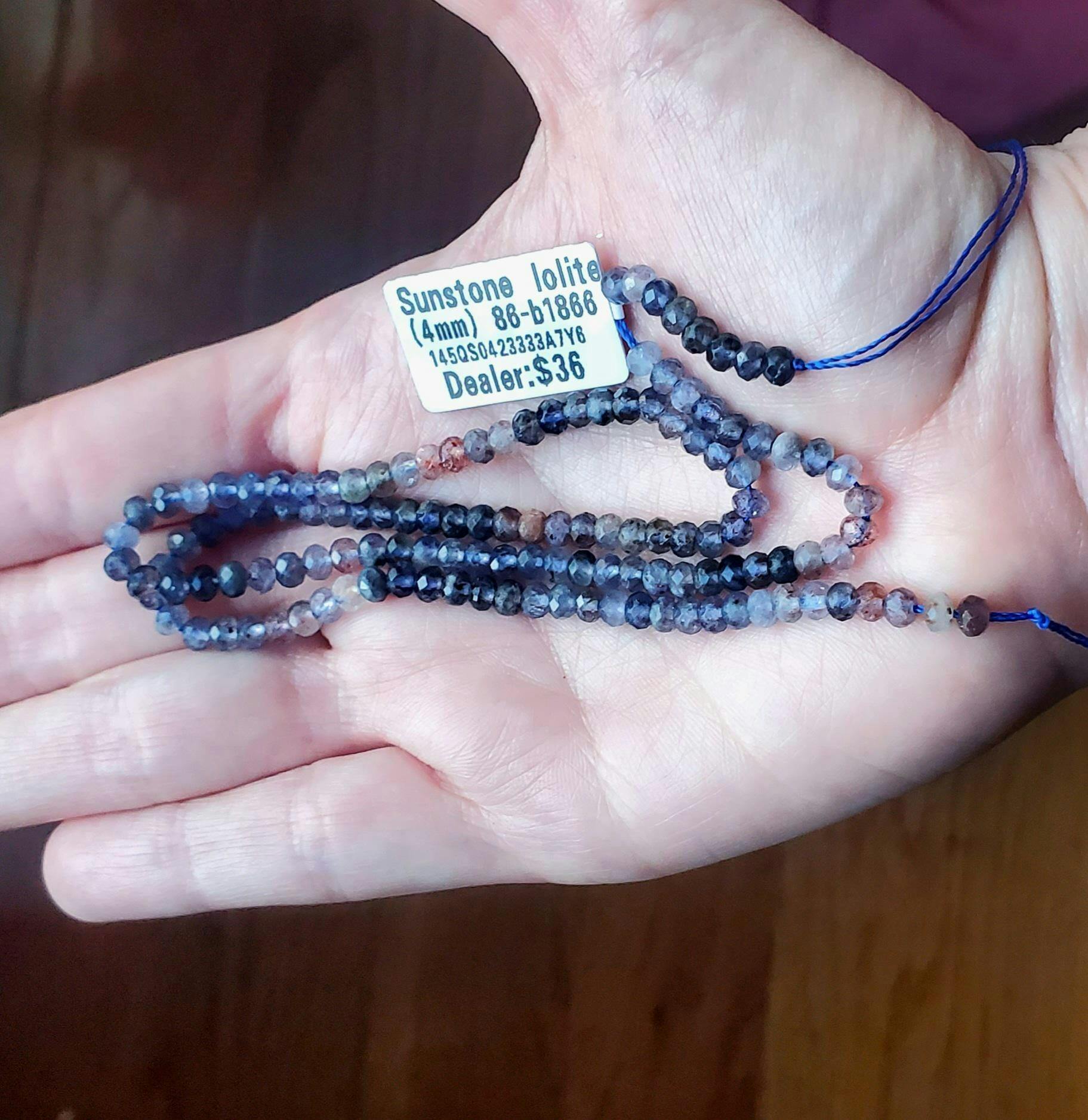Guaranteed 100% natural iolite not treated in any way... You'll find small traces of glowing sunstone in these beads. Sunstone iolite is a relatively new material discovered in India. It's a rare natural hybrid stone of Cordierite (iolite) and plagioclase feldspar (sunstone). Exclusive custom cut for us... Not seen anywhere else!