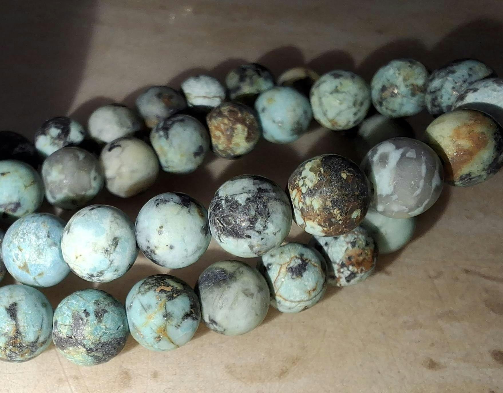 • Matte Natural African Turquoise 4mm 6mm 8mm 10mm 12mm Round Beads  15.5" Strand