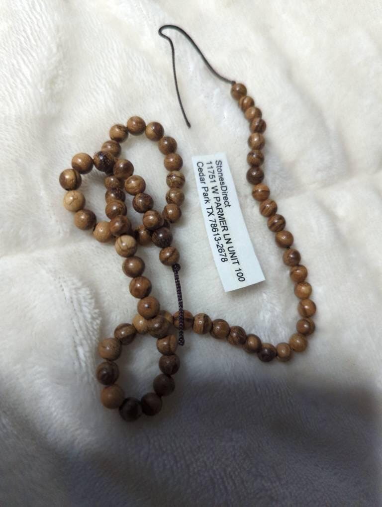 Item exactly as pictured. I've had these for over a year now as an accent piece on a beach outfit. They go in and out of the water and have faded quite a bit, a couple dozen trips later, but I haven't lost any to shattering or wearing off of the thread they're attached to. To fix the fading I apply a coat or two of Linseed/Mineral Oil and they come right back to life.