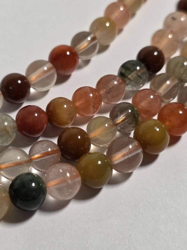 • Natural Red Yellow Green Phantom Rutile Quartz 6mm 8mm 10mm Round Beads Multi Color Quartz Crystal Gemstone 15.5" Strand