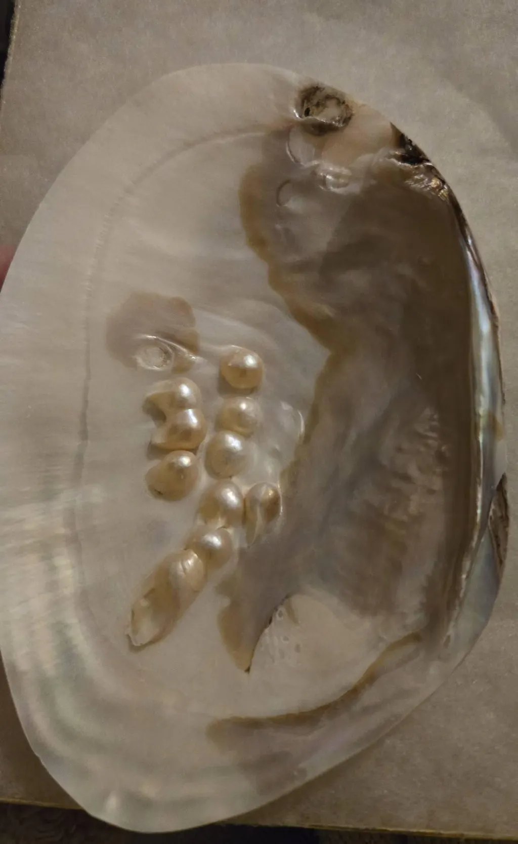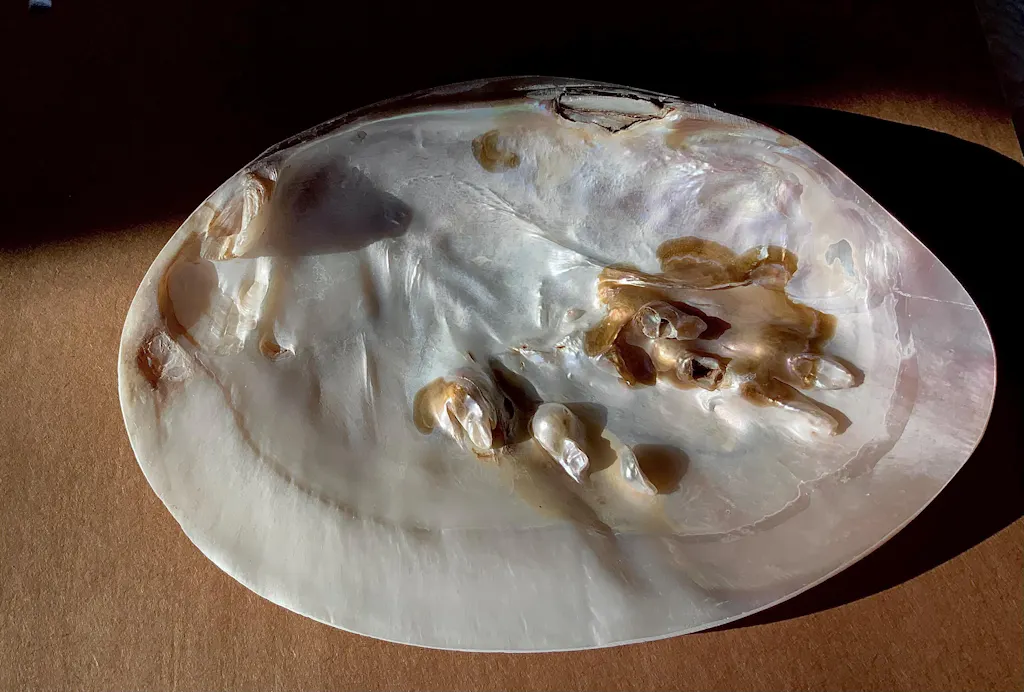 Guaranteed genuine 100% natural mother of pearl shell not treated in any way... These are lots of amazing large natural blister pearls wildly growing within the shell!